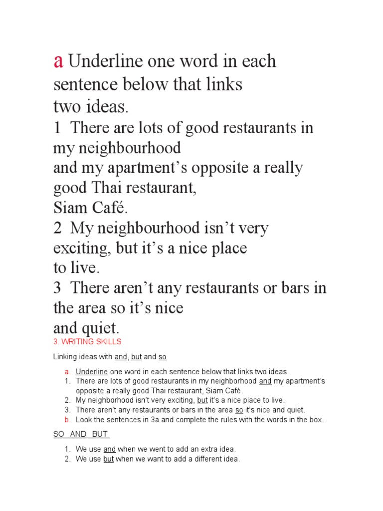 A Underline One Word in Each Sentence Below That Links | PDF ...