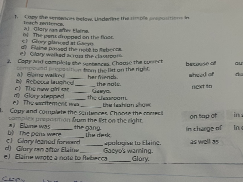 Underline the prepositions in the following sentences || Preposition ...