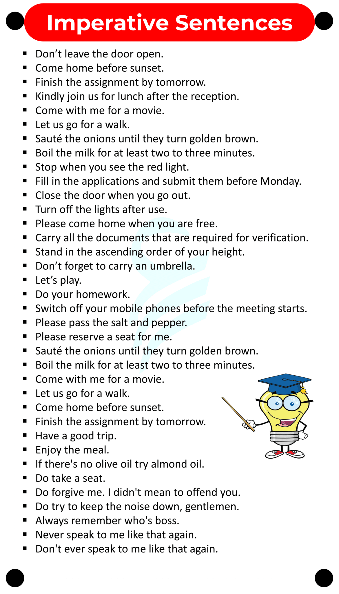 100 Imperative Sentences Examples in English with Pictures - MR MRS ENGLISH