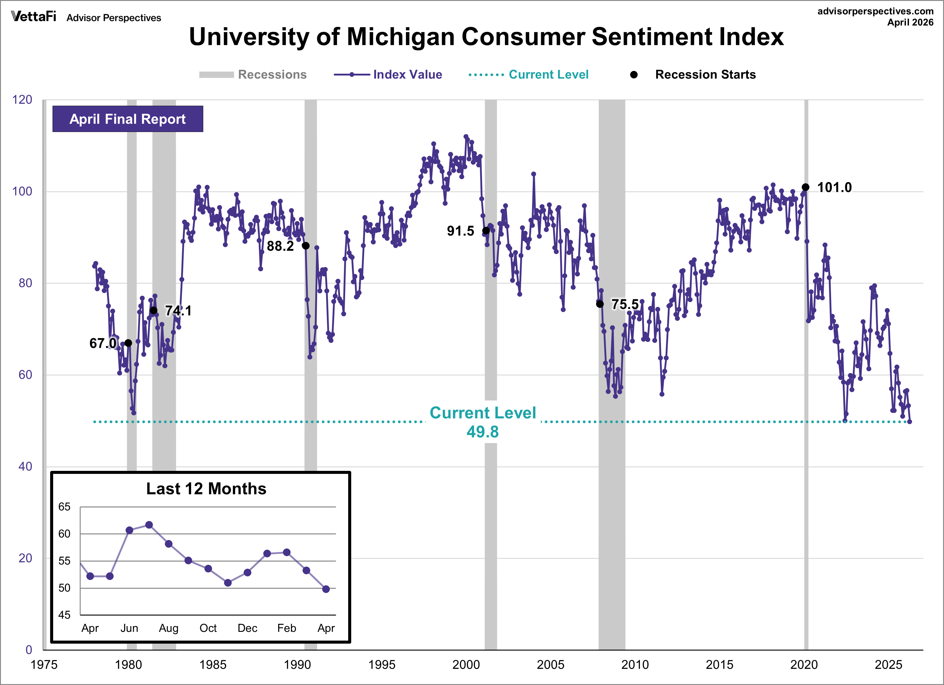 Univ of Michigan Consumer Sentiment Index Drops to Record Low in April ...