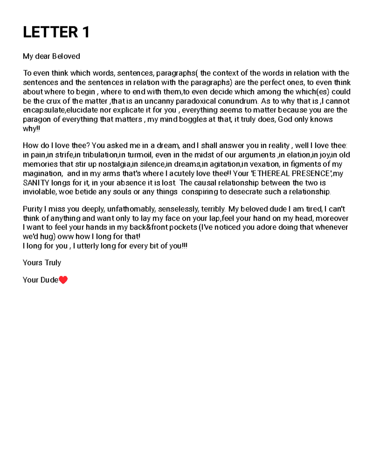 Sentimental Letter 101: Expressions of Love and Longing - Studocu