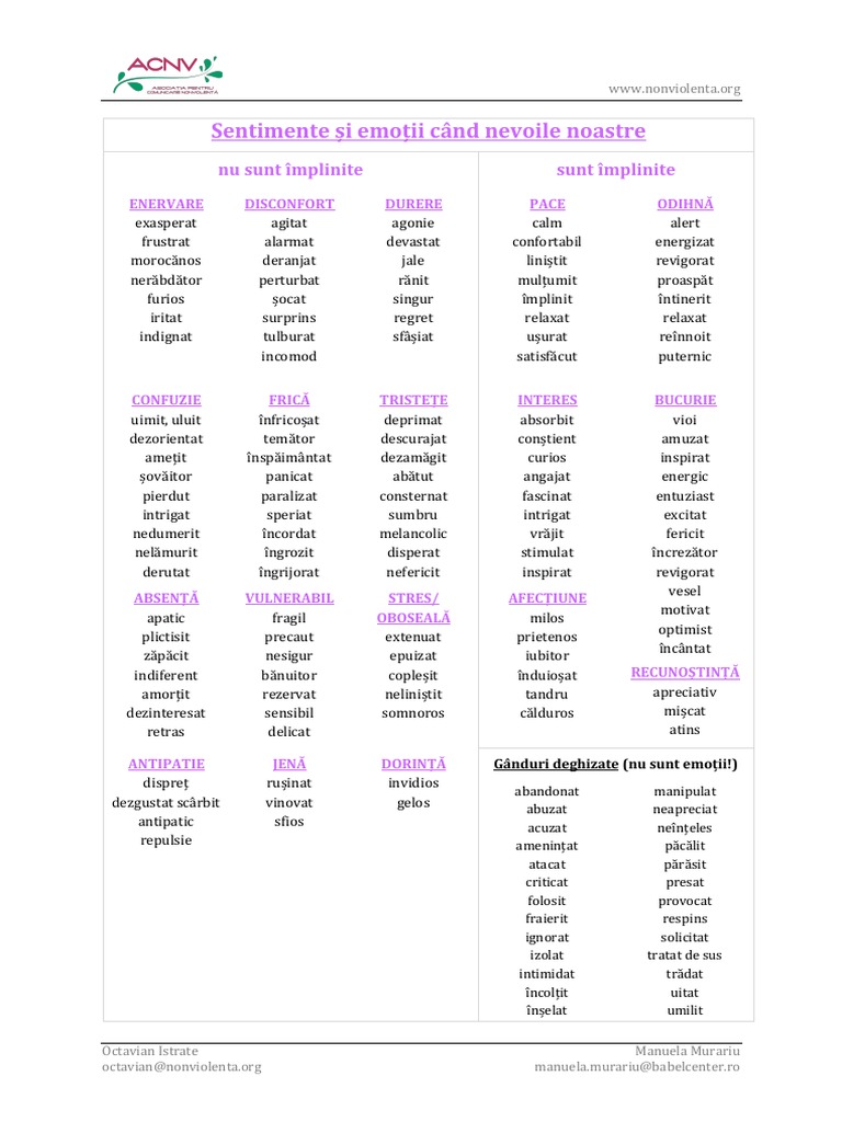 CNV - Lista Cu Sentimente Și Nevoi | PDF