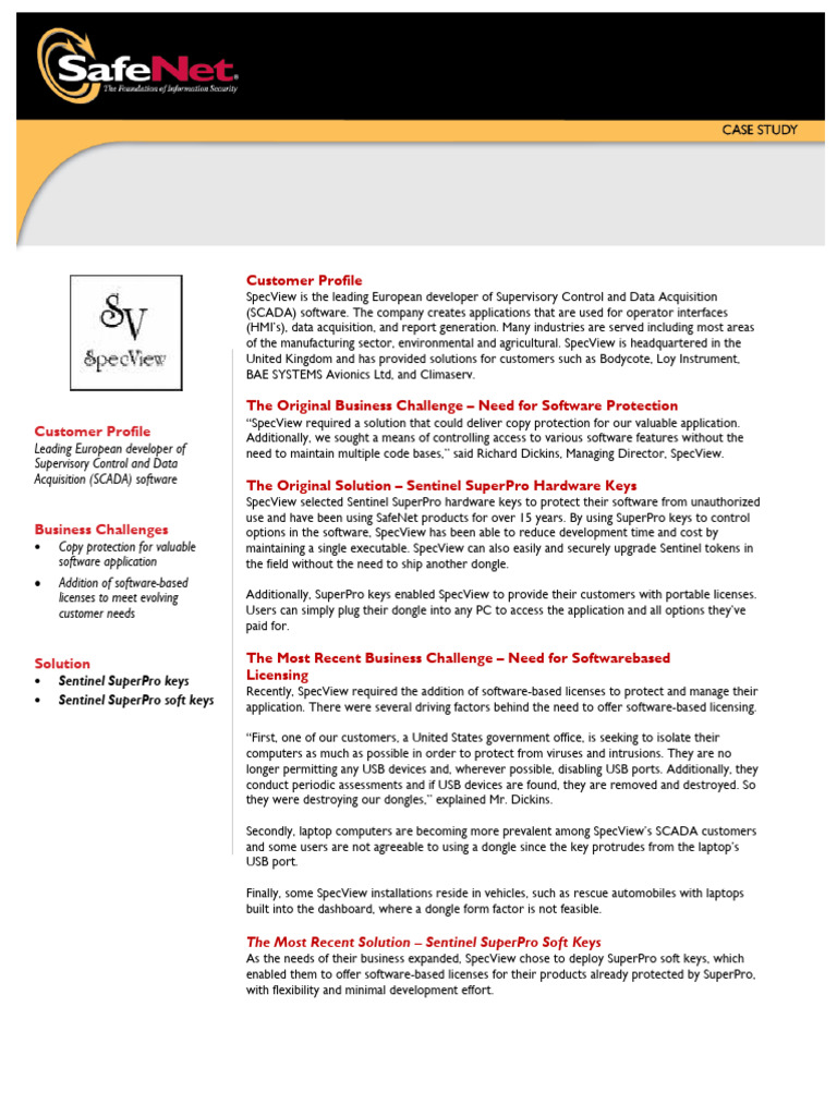 SafeNet_Case_Study_SpecView_Sentinel_SuperPro_Soft | PDF | Software | Scada