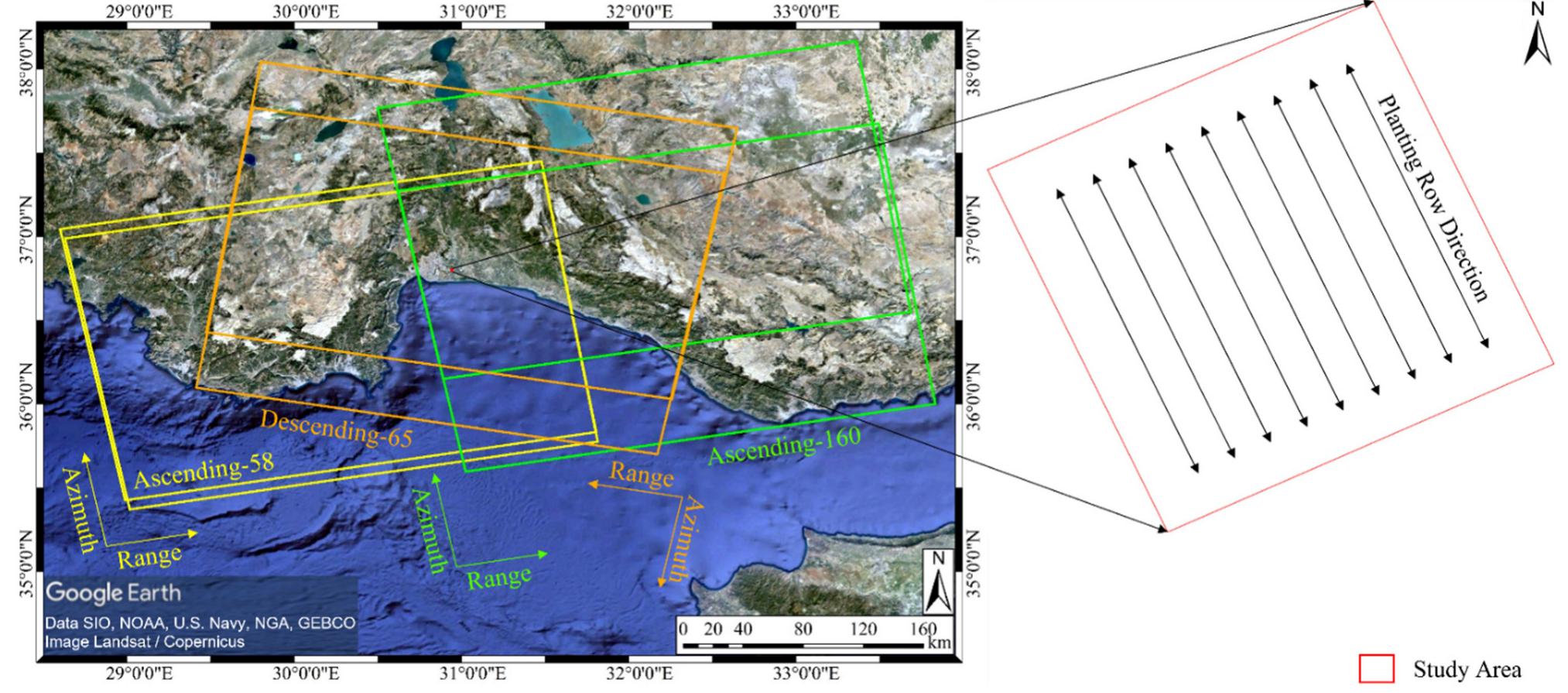 Selection of Sentinel-1 data from different orbital tracks over ...