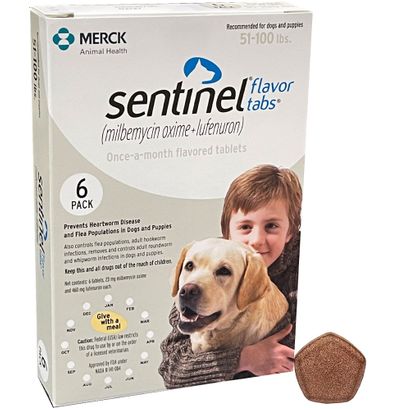Sentinel Flavor Tablets for Dogs 51 to 100 lbs, 6 Month Supply | Petco