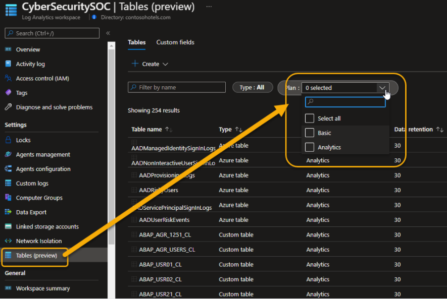 Configure table settings in Microsoft Sentinel | Microsoft Learn