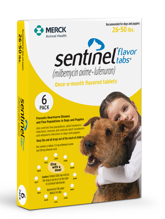 Sentinel Flavor Tablets Yellow 26-50lbs 6 Tablets/6 Months