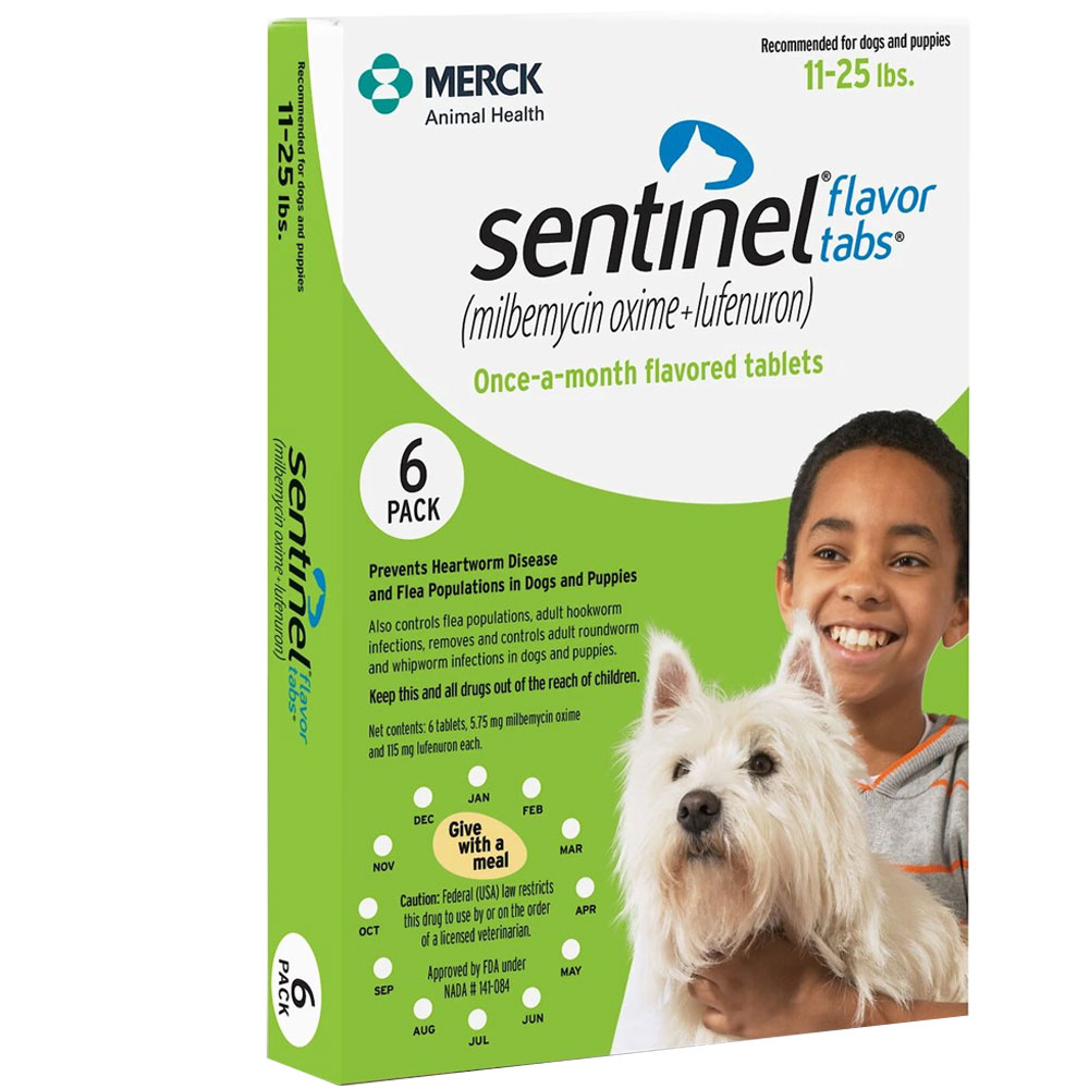 Sentinel Flavor Tablets (Green) 11-25Lbs Canine - Sold By Box = 6 Tab ...