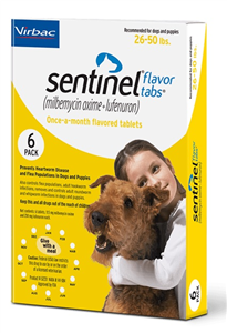 Sentinel Flavor Tablets (Yellow) 26-50Lbs Canine - Sold By Box = 6 Tab ...