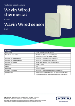 Sentio RT-210 Wired Thermostat | Wavin Ltd | NBS Source
