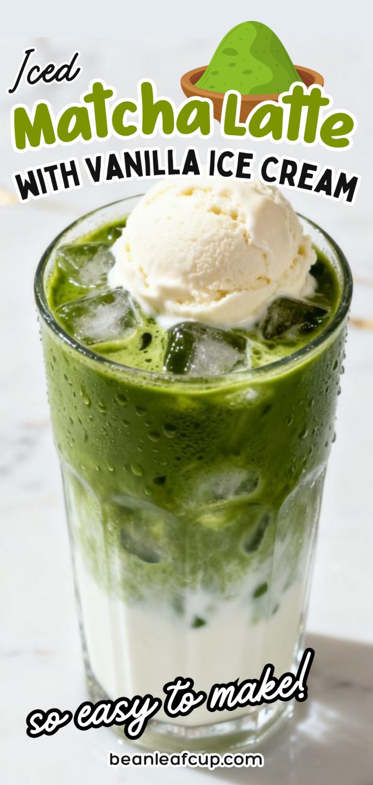 Iced Matcha Latte with Vanilla Ice Cream - Bean Leaf Cup