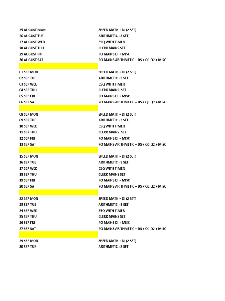 Aug & Sep Study Plan Quants | PDF