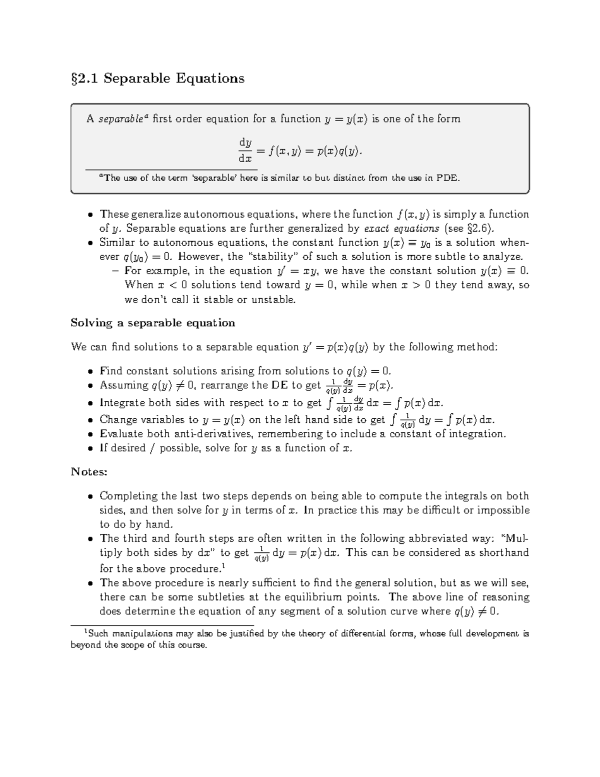 Handout 2 1 - §2 Separable Equations A separable a first order equation ...