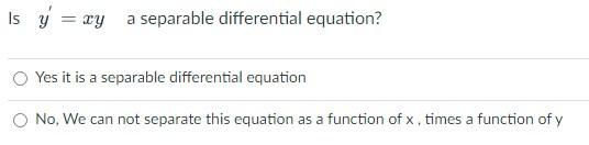 Solved Is y′=xy a separable differential equation? Yes it is | Chegg.com
