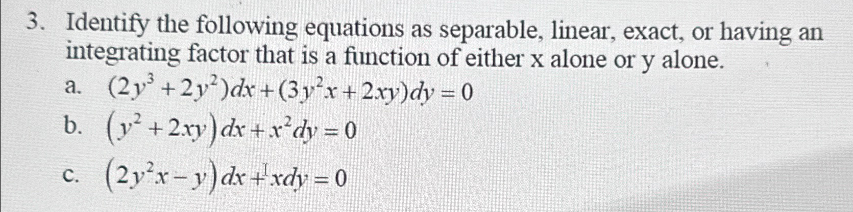 Solved Identify the following equations as separable, | Chegg.com