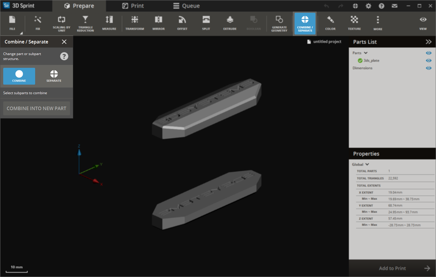 How do I separate a part that consists of multiple shells