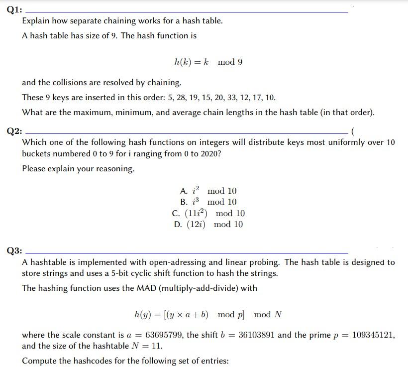 Solved Q1: Explain how separate chaining works for a hash | Chegg.com