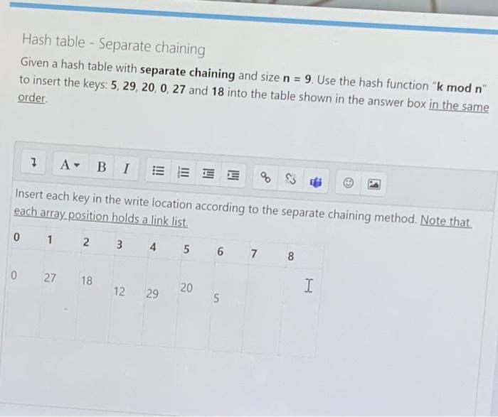 Solved Hash table - Separate chaining Given a hash table | Chegg.com