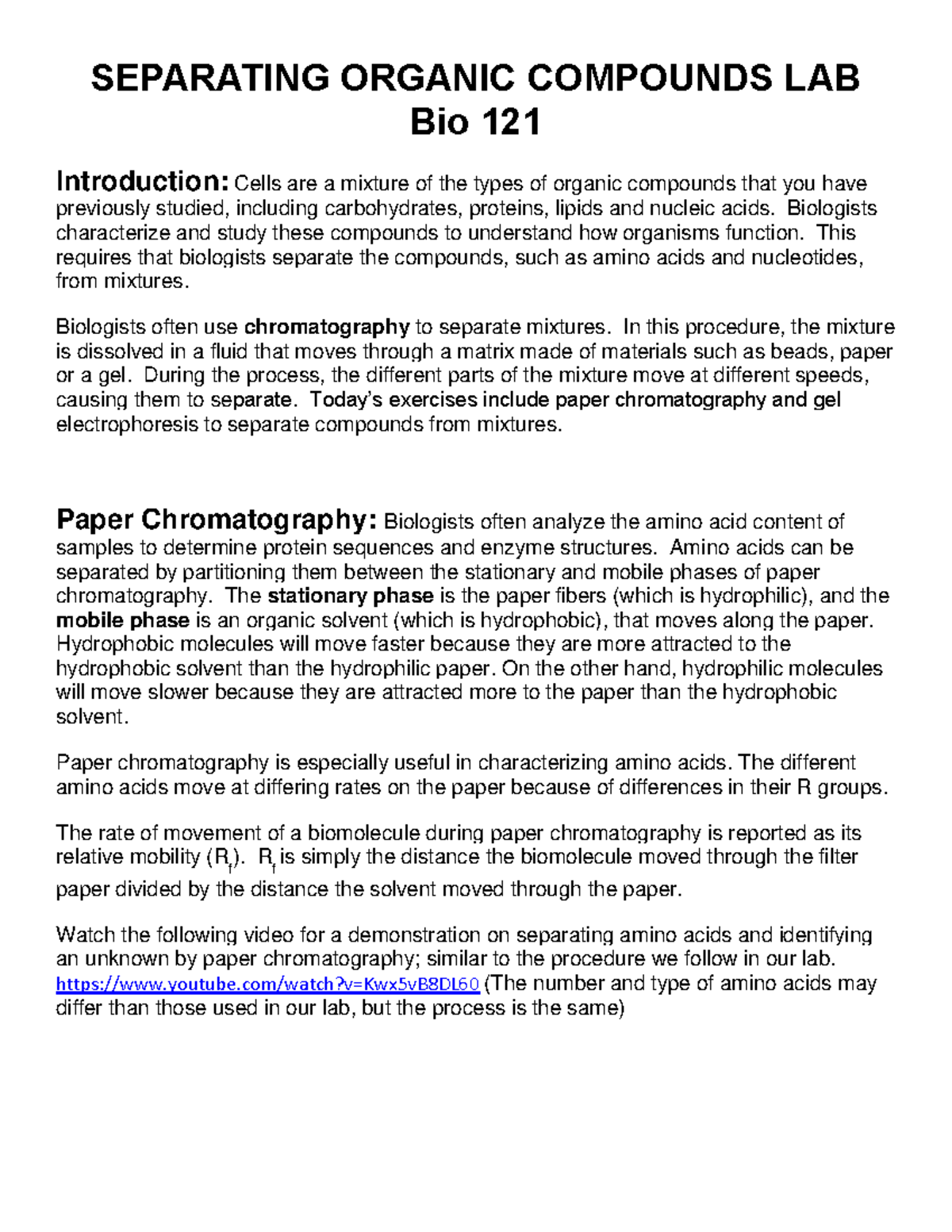 Separating Organic Compounds Lab Bio121 - SEPARATING ORGANIC COMPOUNDS ...