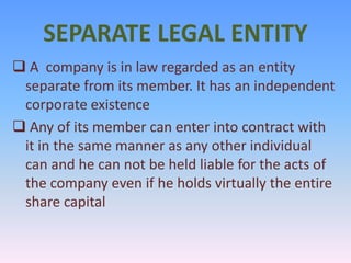 Separate Legal Entity | Separate Legal Entity in Company Law | Meaning ...