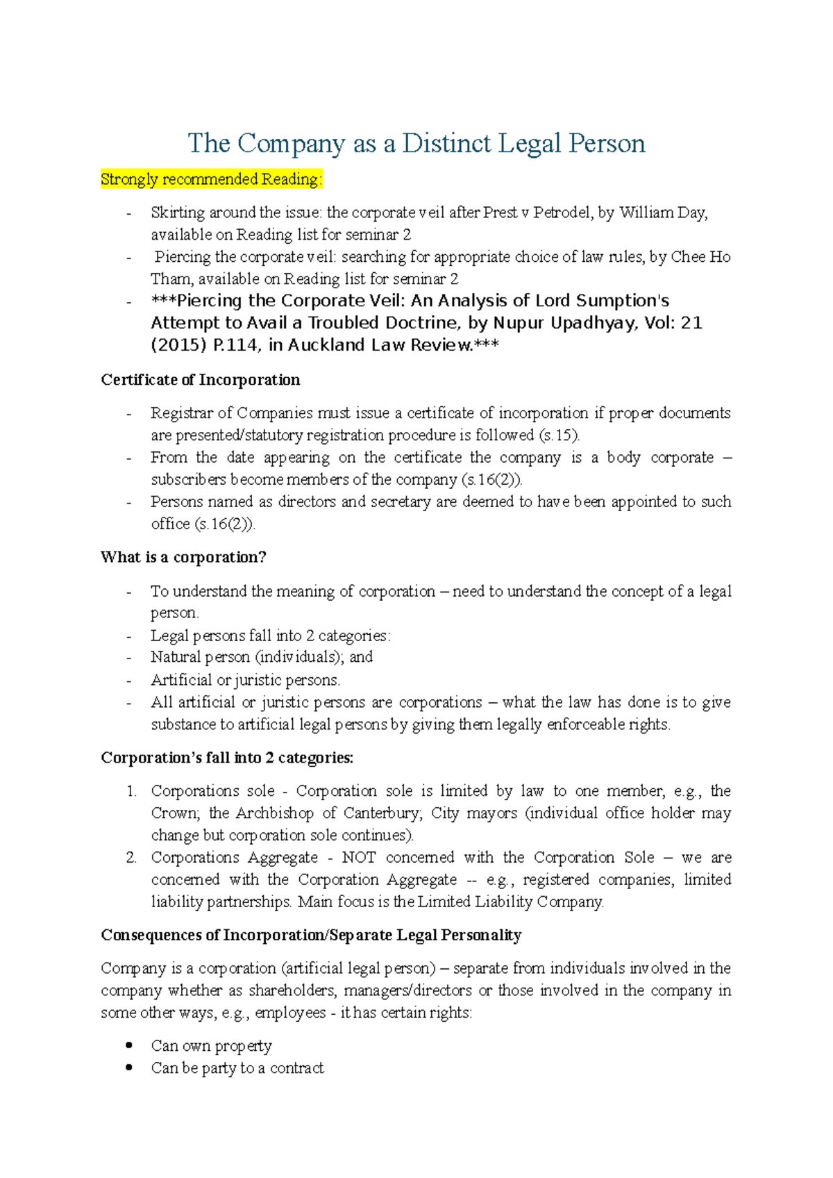 Corporate Personality: Understanding Separate Legal Entity Principles ...