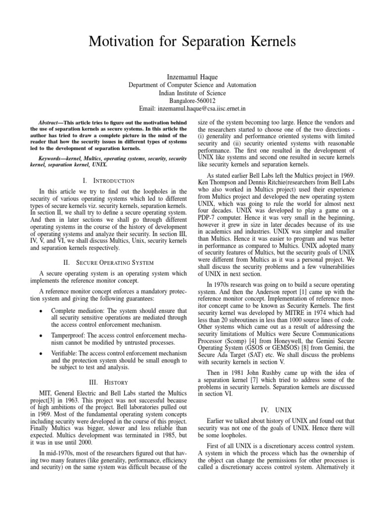 Motivation for Separation Kernels | PDF | Kernel (Operating System) | Unix