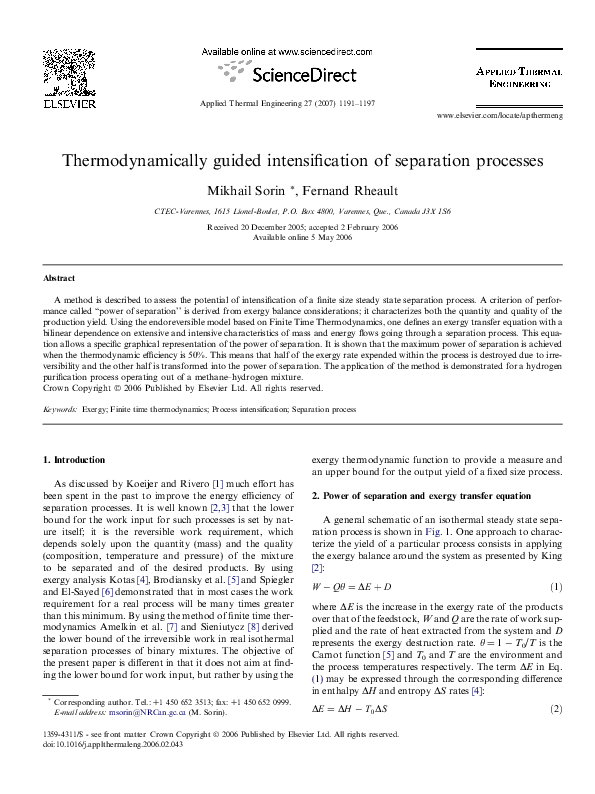 (PDF) INVESTIGATION OF THE INTENSIFICATION OF SEPARATION PROCESSES ...