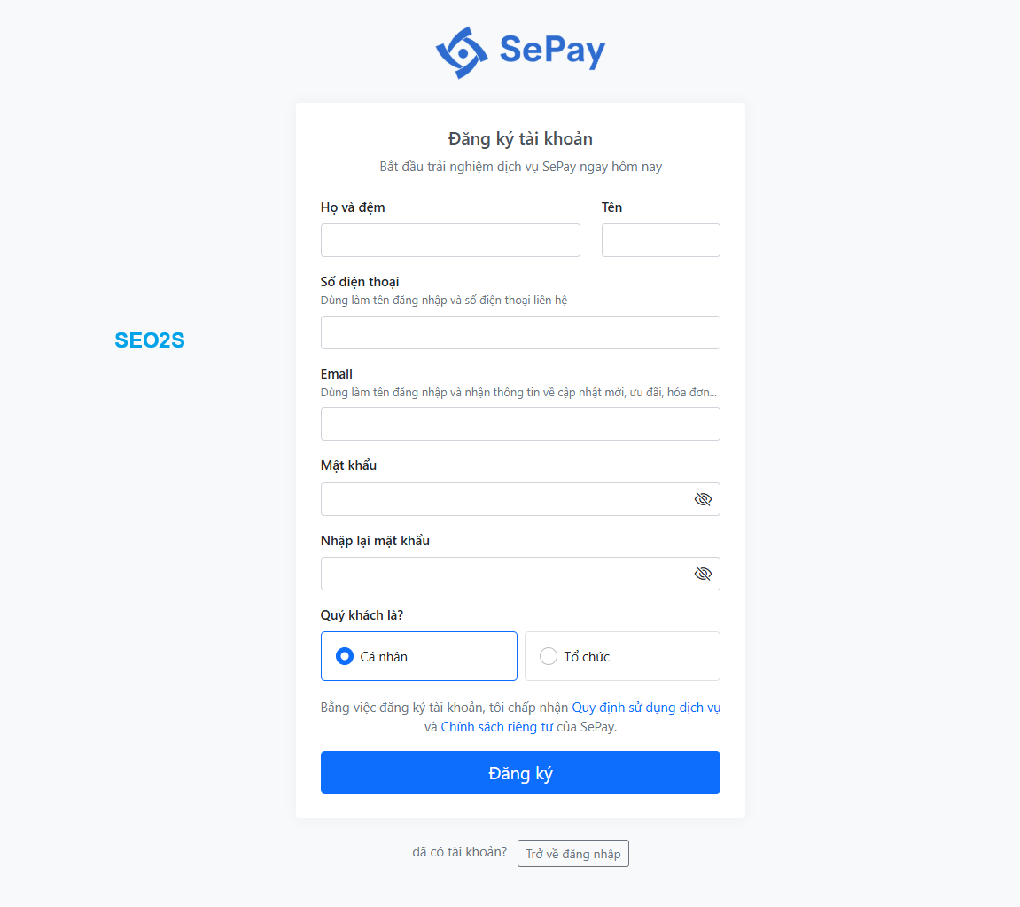 Bắt đầu nhanh | SePay | SePay Dev