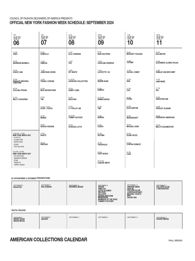 Official NYFW Schedule - September 2024 - 9.4.2024 | PDF