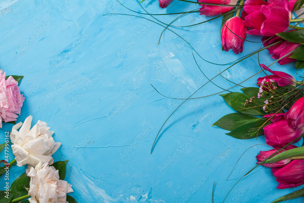 beautiful background with flowerso . Spring summer border template ...