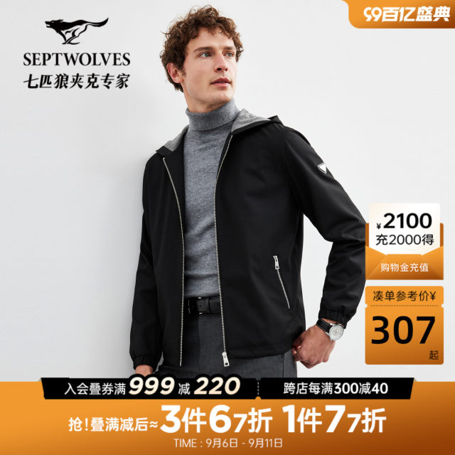 Septwolves hooded jacket men's autumn new style young handsome ...