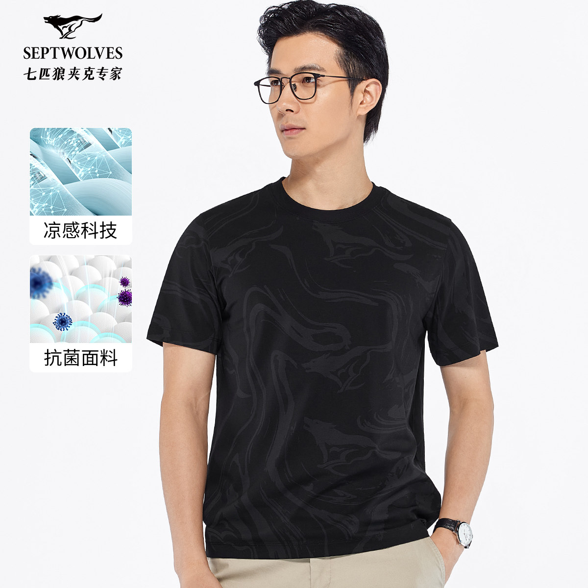 Septwolves เสื้อยืดแขนสั้นผู้ชายแบบใหม่ฤดูร้อนปี2024ชุดผู้ชายคอกลมแขน ...
