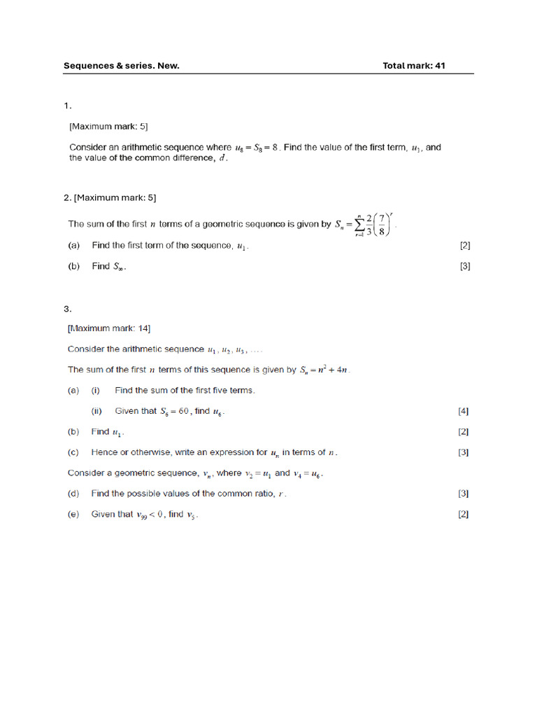 Sequences Worksheet, GCSE PDFs & Exam Questions