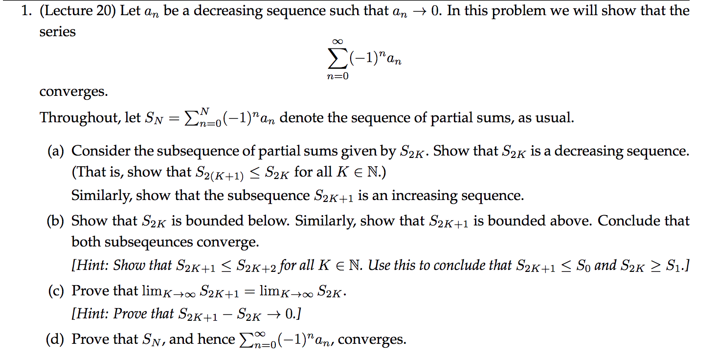 Solved 1. (Lecture 20) Let an be a decreasing sequence such | Chegg.com