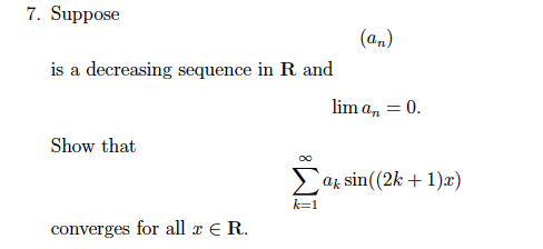 Solved 7. Suppose (an) is a decreasing sequence in R and | Chegg.com