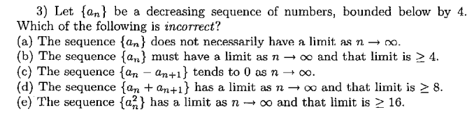 Solved 3) Let {an} be a decreasing sequence of numbers, | Chegg.com