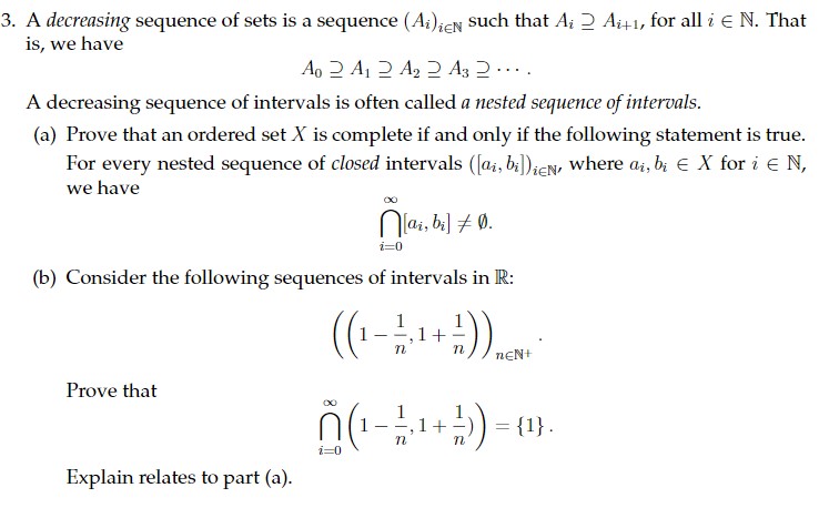 Solved A decreasing sequence of sets is a sequence (Ai)i∈N | Chegg.com