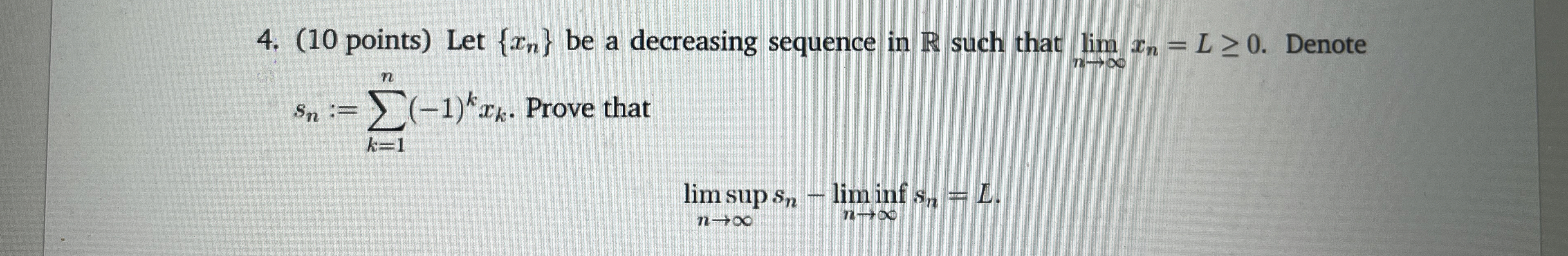 Solved (10 points) Let {xn} be a decreasing sequence in R | Chegg.com