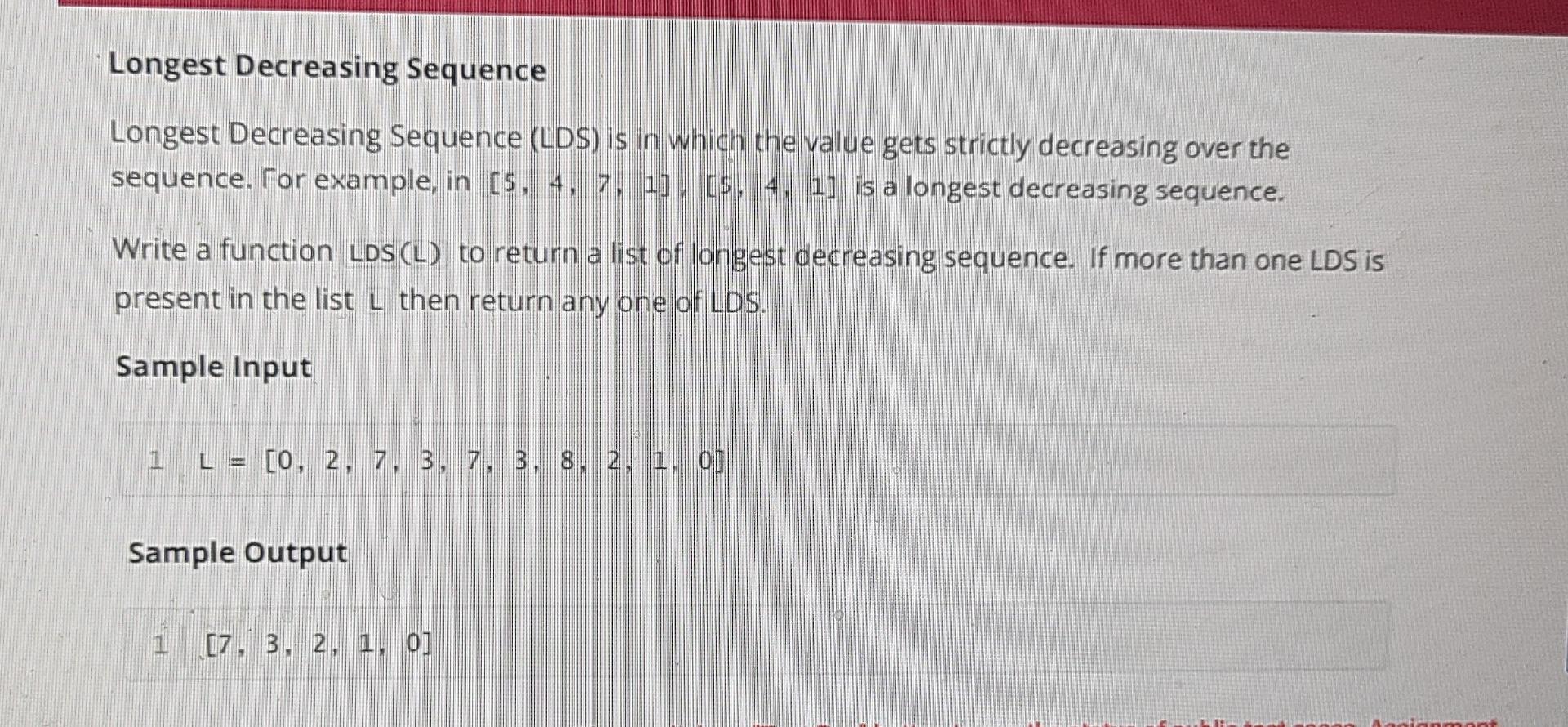 Solved Longest Decreasing Sequence Longest Decreasing | Chegg.com