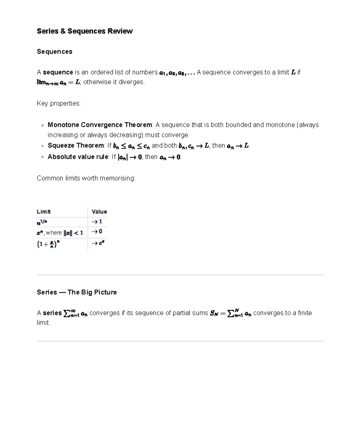 Series & Sequences Review: Key Concepts & Convergence Tests - Studocu