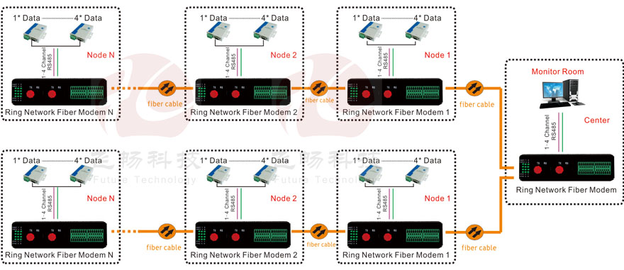 Industrial Grade 4 Channel Serial Data Fiber Optic Modem