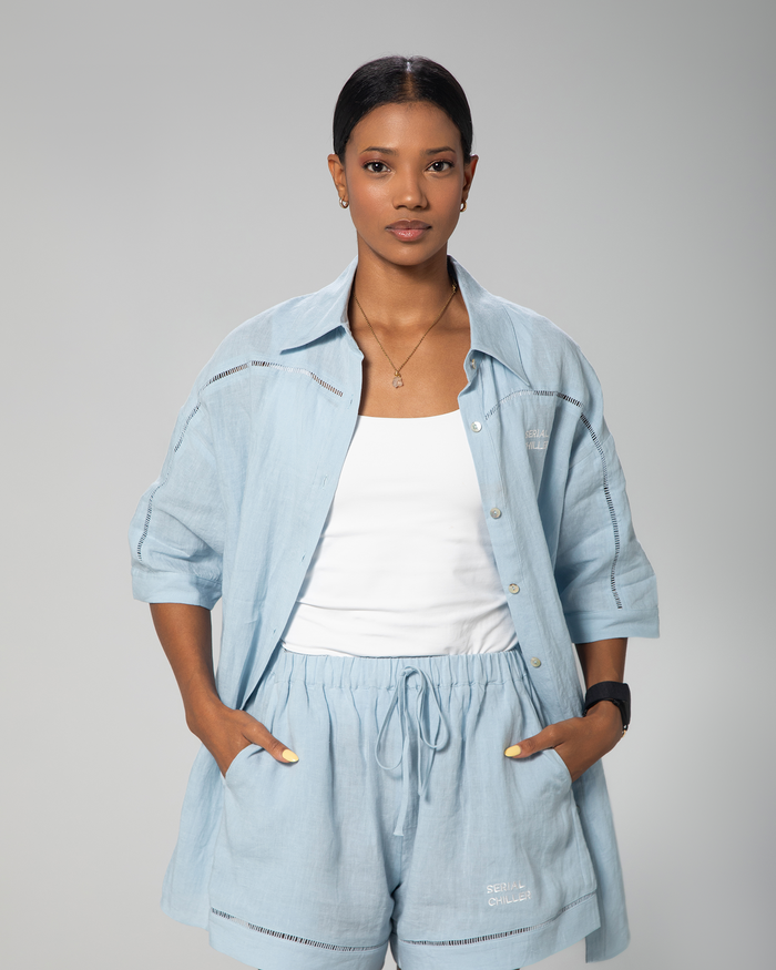 The Serial Chiller linen set in Blue