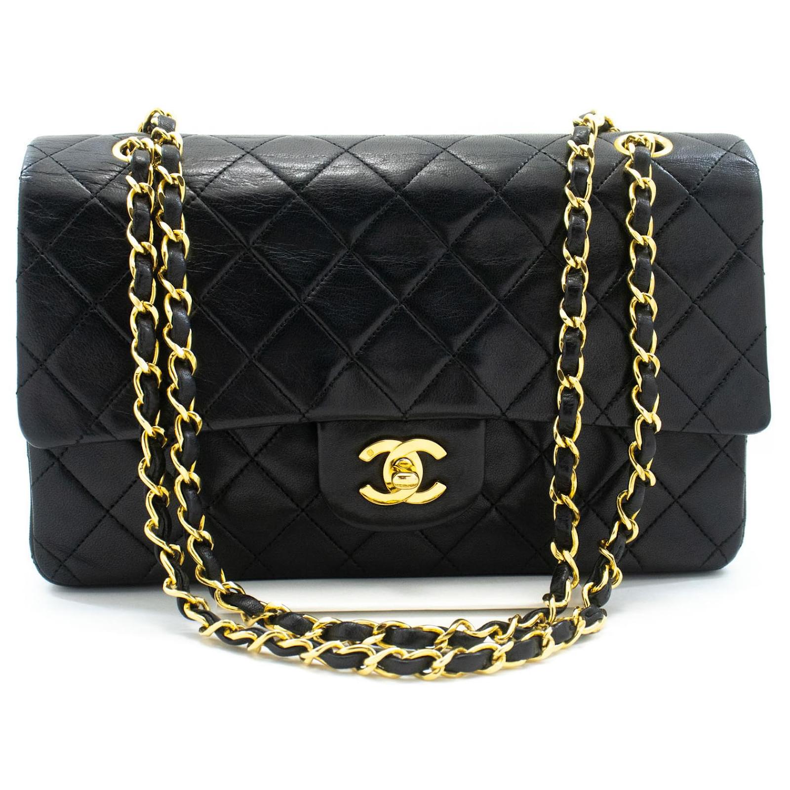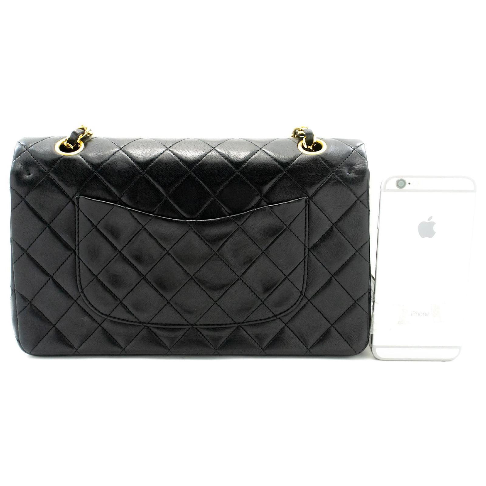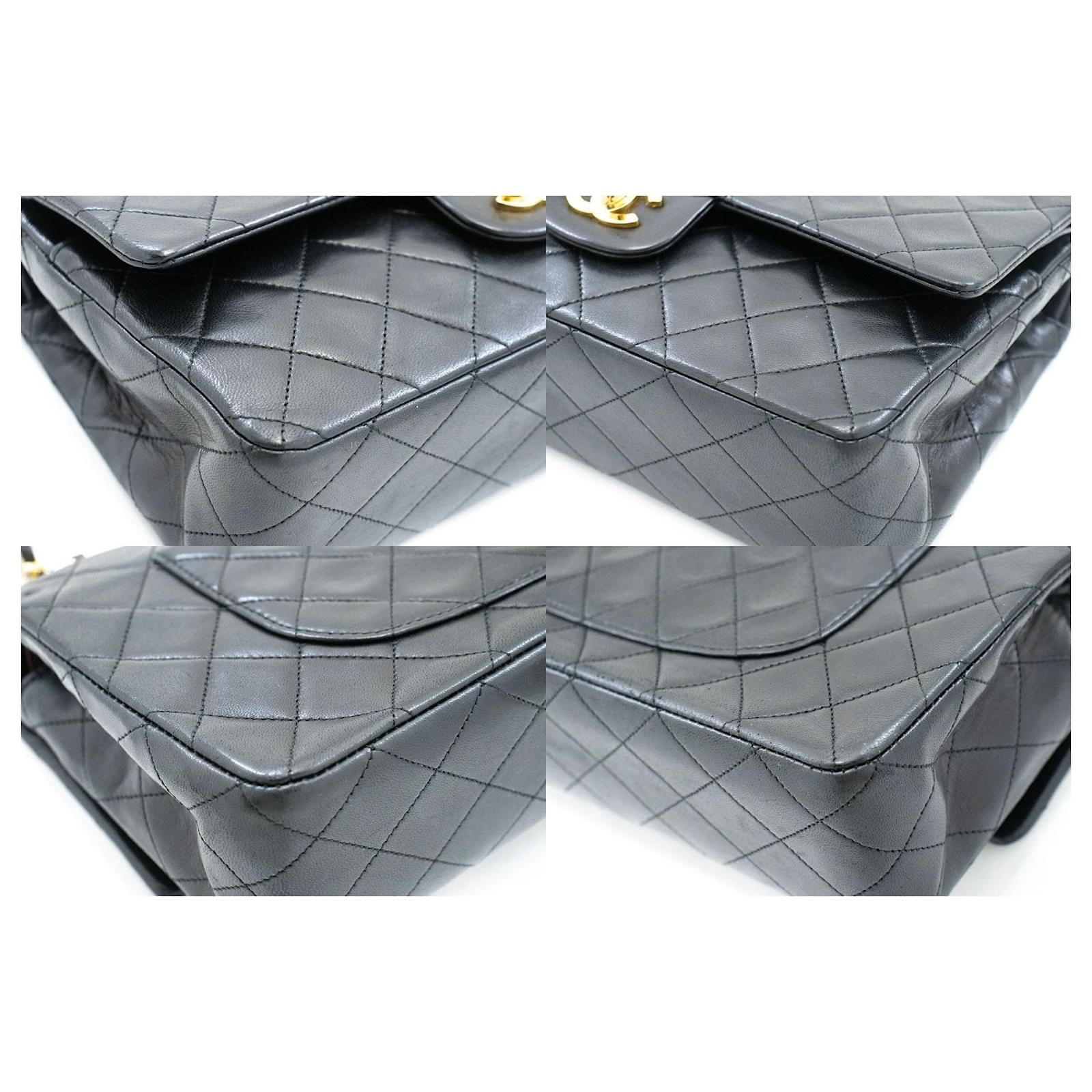 CHANEL Classic Double Flap 10" Chain Shoulder Bag Black Lambskin ...