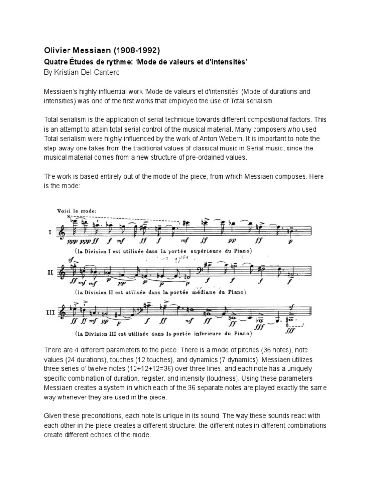 Messiaen's Highly Influential Serial Work 'Mode de valeurs et d ...