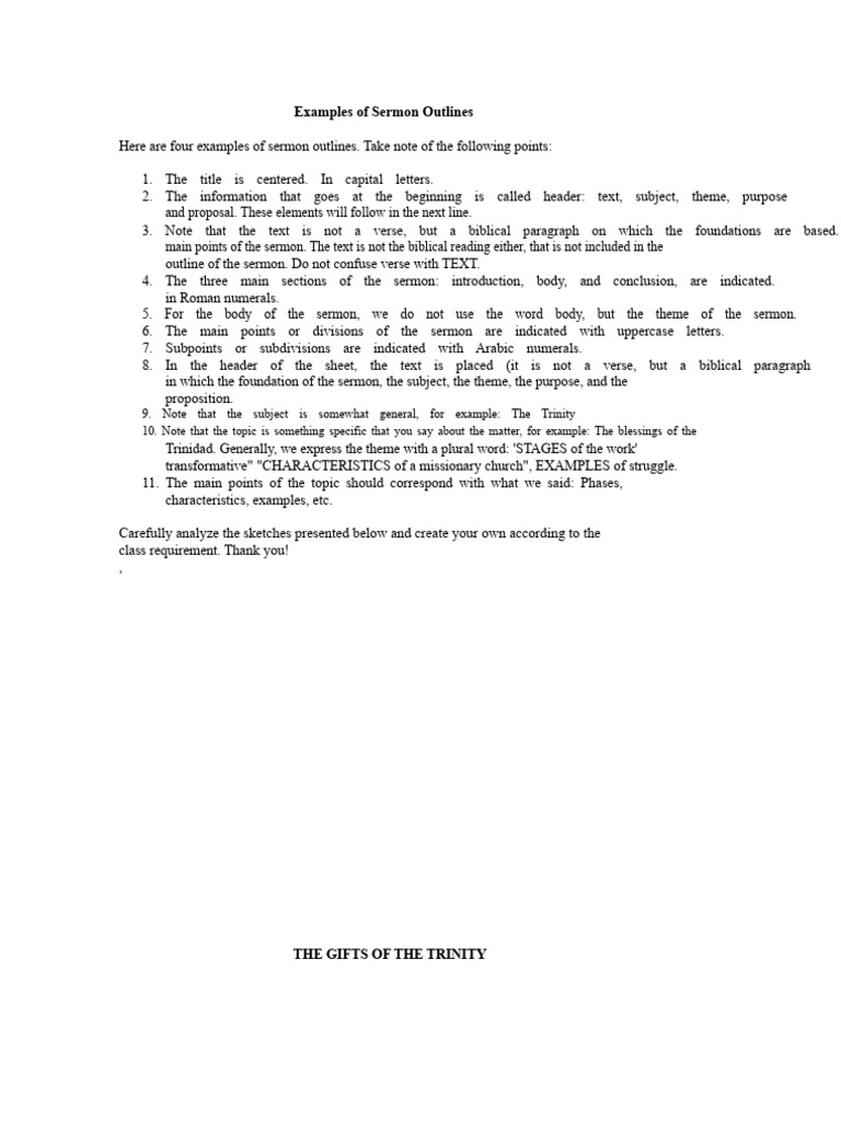 Example Of A Sermon Outline