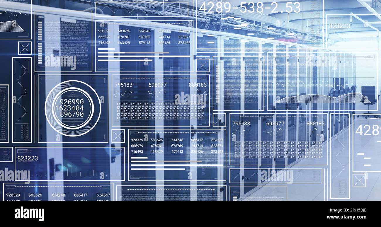 Image of digital interface over server room Stock Photo - Alamy