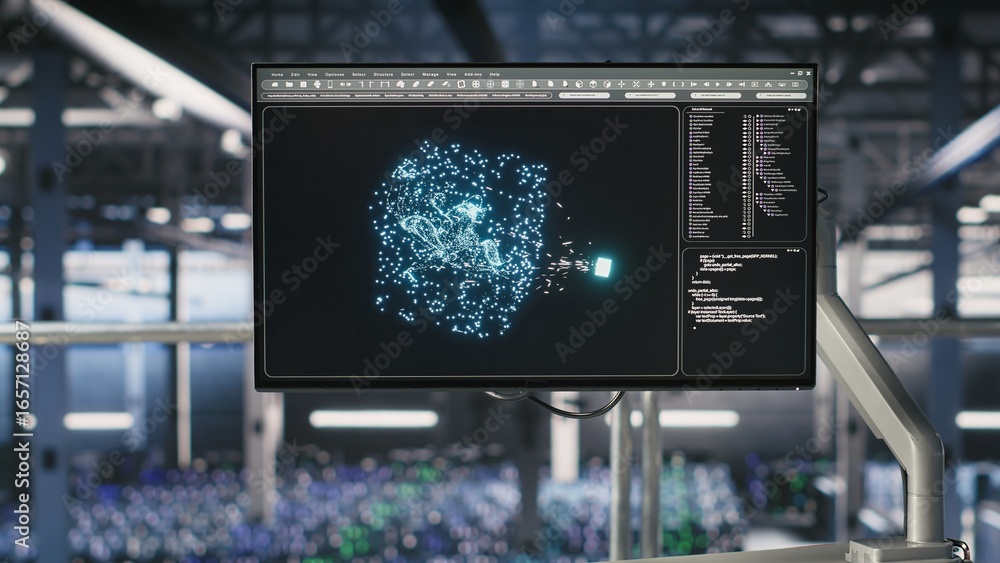 Monitor used to analyze data from servers in computer server farm Stock ...