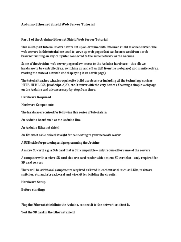Arduino Ethernet Shield Web Server Tutorial | PDF | Ajax (Programming ...