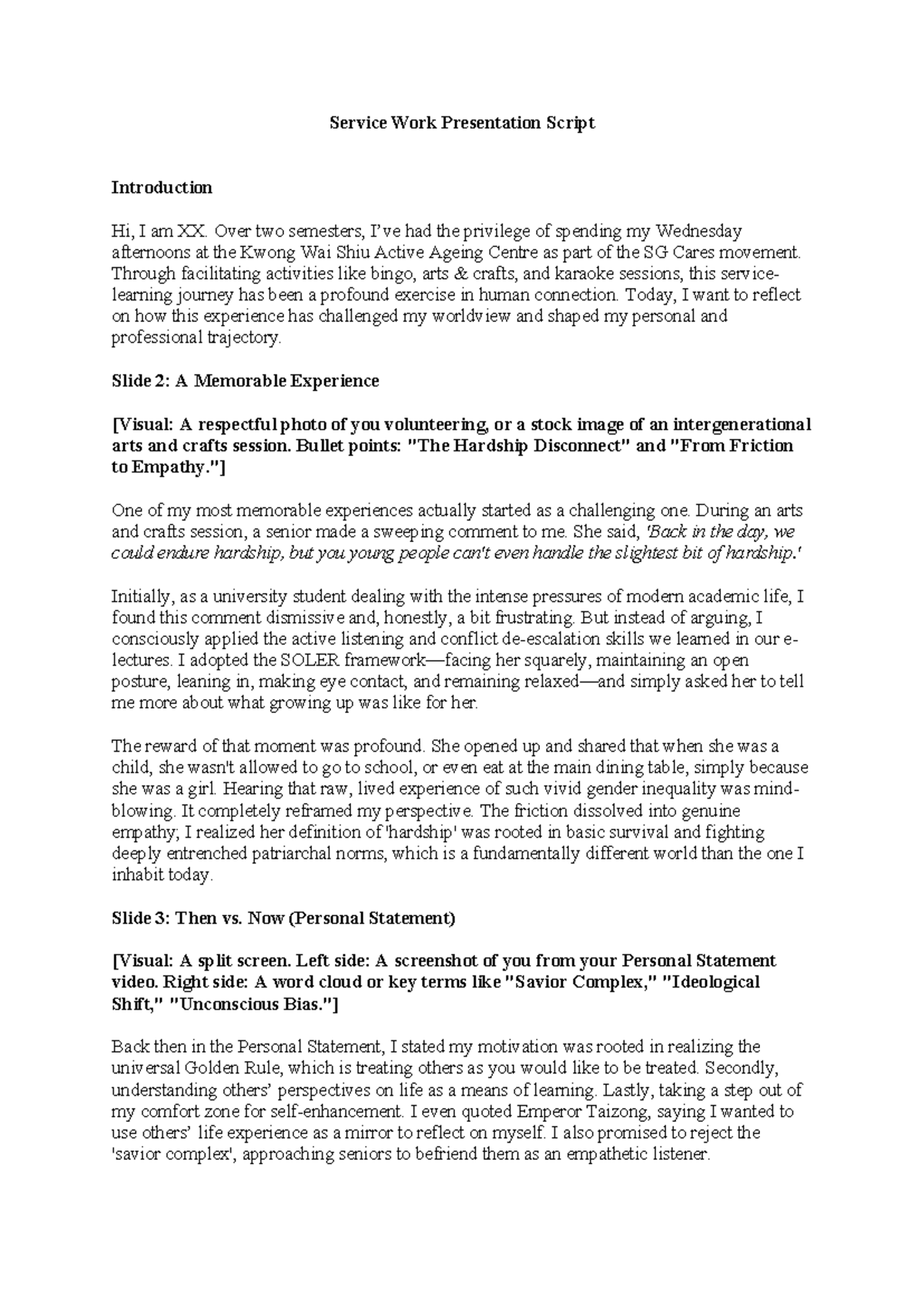 SG Cares Service Work Presentation Script: Reflections on Volunteering ...