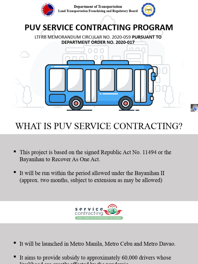 What is PUV Service Contracting Program (SCP) - LTMS PORTAL PH